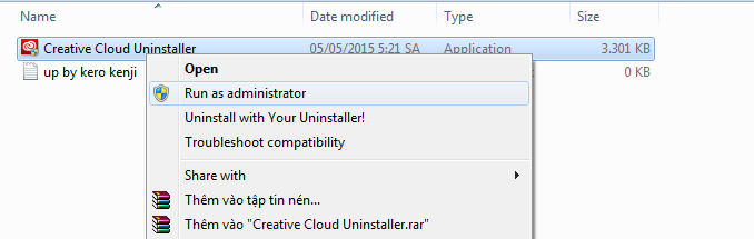 3. Chạy Chạy file Creative Cloud Uninstaller.exe với quyền Admin 0